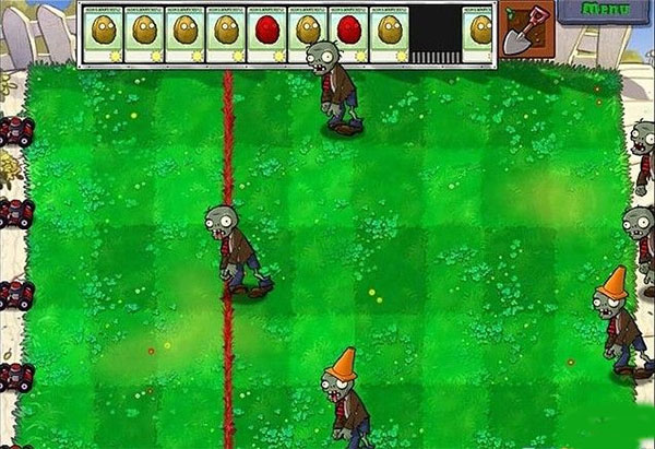 1、这是一个迷你游戏,上面给墙果,让你滚过去砸僵尸。跟打保龄球一样,连声效都是一样的。