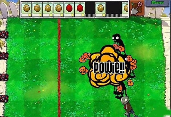 4、最后一波僵尸很多,不过不用怕,前面攒了四五个红色墙果,随便滚过去吧。
