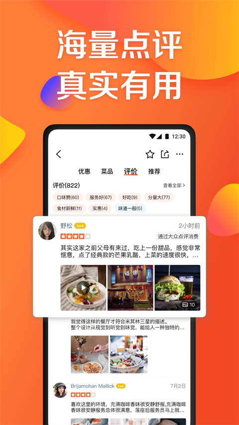 大众点评app,这是一款聚集本地生活吃喝玩乐的娱乐分享平台。作为消费者,软件会为用户们提供美食推荐、旅游攻略、亲自娱乐、新奇去处等服务,用户只需要开启定位即可享受即时优惠。同时软件内所有用户的评价都是真实的,可以助你种草和拔草各种店铺,避免踩雷。作为商家,用户可以注册绑定,发布优惠活动吸引消费者们,实现双赢!