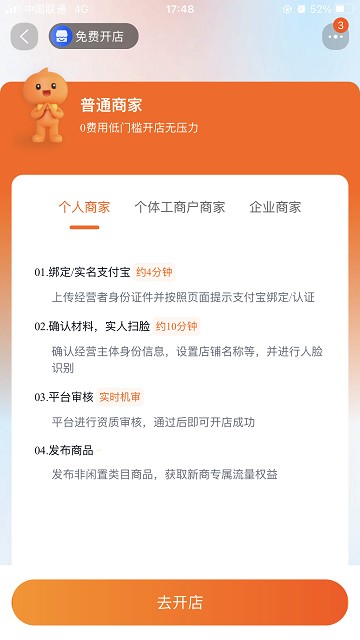 第二步:选择开店身份