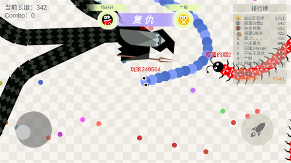 4、小心!当你的蛇头碰到其他贪吃蛇的身体时就会死亡,并且产生大量小豆豆;