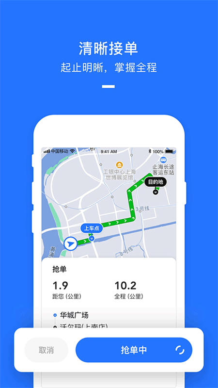 3、导航服务:内置导航功能,司机可以根据订单路线导航前往乘客上车点和目的地。