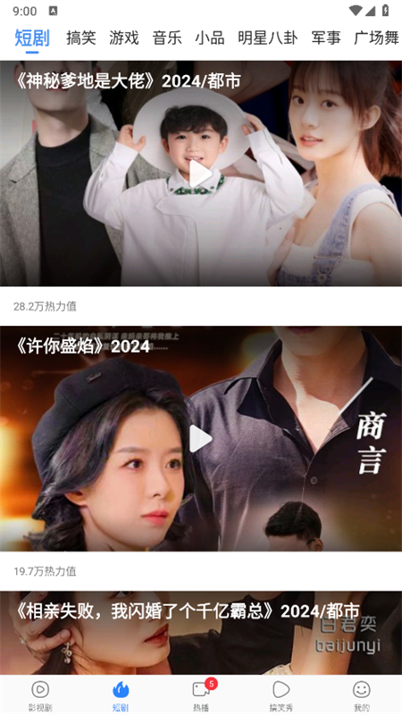 汤圆短剧是一款观看短剧的app,平台汇集了都市、言情、悬疑、喜剧、职场、重生等多种热门题材,所有用户都可以找到自己感兴趣的观看内容。短剧一集只有3-5分钟,情节紧凑但是内容还是很丰富的,可以竖屏观看,适合利用碎片化的时间进行观看。软件还配备了个性化推荐功能,会根据用户的观看记录与偏好,智能推送相关内容,减少筛选时间,让追剧过程更加轻松高效。