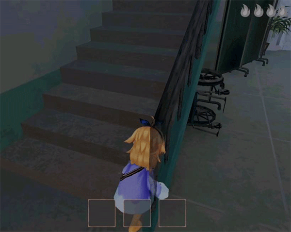 2、然后顺着楼梯扶手蹲着走,一定要蹲着;