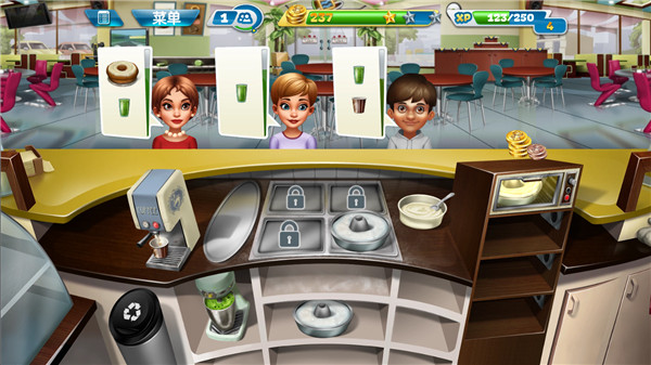 另一种获胜方式——隐藏奖励【不做主菜,只用甜点和饮料过关。建议快餐店各种辅助数据都升满,第一关很容易达成】