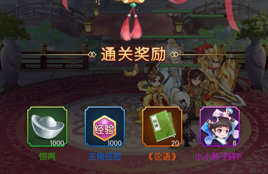 通关奖励:每次挑战已通关关卡并再次成功通关,将获得该章节对应随从碎片奖励,主角经验,论语以及少量银两。