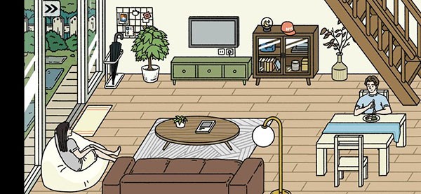 开局可以选择二个角色,第二个是需要出去打工赚钱的,怎么度过这段时间,怎么来来布置这个家你说了算。