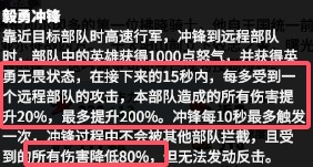 而【冲锋到远程部队时,在接下来的15秒内,每多受到一个远程部队的攻击,本部队造成的所有伤害提升20%,最多提升200%】更是在大规模团战中极大幅度提升了骑兵的杀伤效率,有效避免了部分情况下骑兵虽然冲锋到了远程部队,却无法造成有效杀伤的窘境。