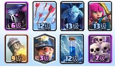 火箭:非常重要的一张卡牌,在天梯中,你是否有闪电电不死女巫的经历,是否有胖子后面跟一堆火枪、法师、屠夫、电磁炮这样的后排,是否有无法斩杀导致遗憾落败的经历?火箭将会是一张很万能的卡牌。在这个环境下,女巫和跑车多了起来,这也渐渐增强了屠夫,增强了这三样意味着什么?火箭的春天来了!不过火箭炸后排也是有顺序的,我一般是:斩杀<火枪<法师<屠夫<三枪<女巫。为什么女巫最先处理掉?因为其他的后排基本上皮卡都能一刀砍掉(其实6级皮卡砍不死11级火枪/火法),而女巫生产的小骷髅会让皮卡很难受,不过遇到三枪最好选择火箭,毕竟三枪套带女巫的不多。遇到采集器可以矿工+法术预判的方式,也可以火箭直接炸,但要做好对面女巫的准备。