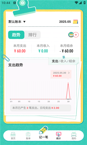 2、日常账本、工作账本、旅行账本,满足您的多场景记账需求