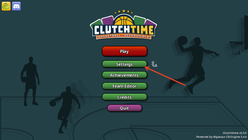 1、在本站下载安装篮下王朝,运行游戏并点击“settings”;