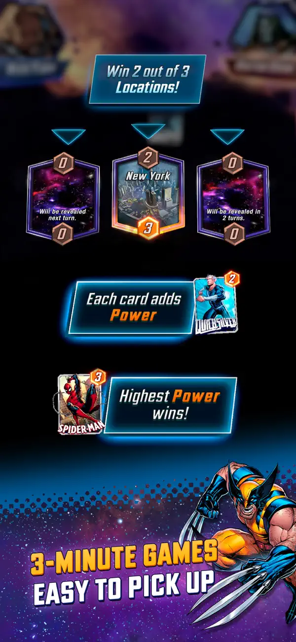 漫威终极逆转国际服,英文名叫做MARVEL SNAP,是一款漫威主题卡牌策略游戏,三分钟一局的快节奏对决让玩家尽享竞技的乐趣。这款游戏加入了创新的“SNAP”机制,让当你在对决中重重加码,将给对手带来无限的压力,合理运用这个机制,体验不一样的趣味竞技。这里有各色精美的漫威英雄卡面,以及超过五十个漫威经典场景从阿斯加德到瓦坎达,等待你的收集、探索,快来解锁你喜欢的漫威英雄吧!