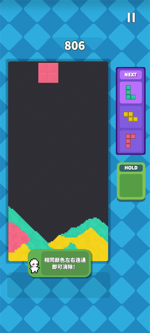 5、颜色不适合时,点击HOLD可以储存一个方块。