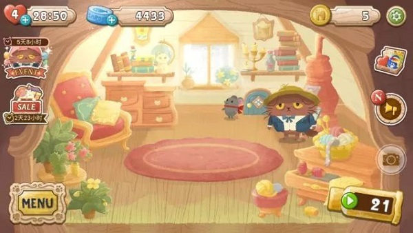 我们可以用通关奖励的金币和卖出画作的报酬帮尼果装修破旧的房间,一步一步还原每一个房间的本貌,在这个过程中慢慢感受尼果和铲屎官之间的有爱。