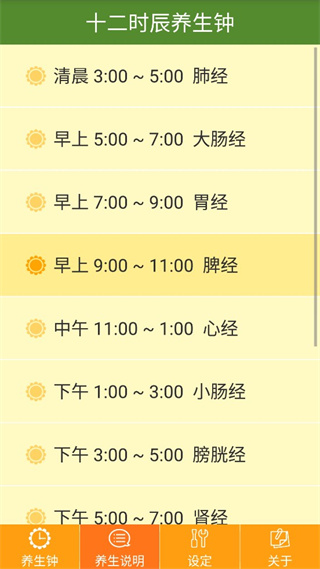 十二时辰经络养生钟app是一款实用的健康养生类软件,可以查看详细的十二时辰经络时钟图解,各个时辰的宜忌事项都可以清楚查询,能够在软件中为每个时辰添加对应的需做事项,使自己养成健康合理锻炼与规划的习惯。还提供丰富的传统中医养生方式,有兴趣的用户赶快下载使用吧!