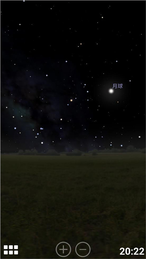 2、用户点击软件中的缩小按钮将天空页面缩小,即可在月球左侧看到隐约的银河影像;