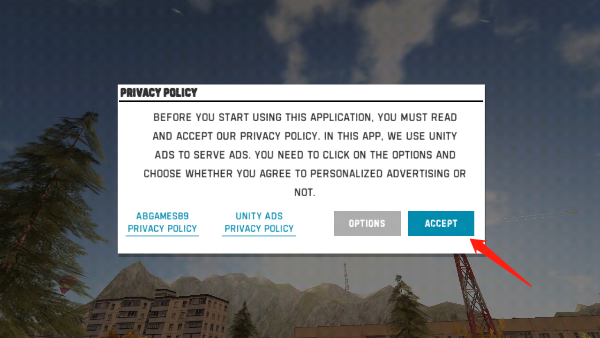 1、进入游戏时会弹出隐私政策的窗口,点击ACCEPT接受。