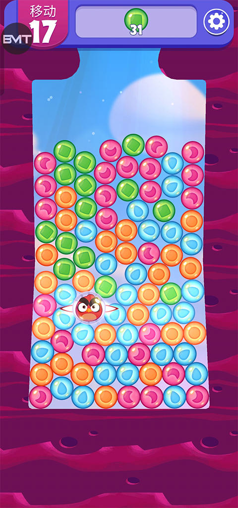 2、上方有数量颜色的泡泡是玩家需要完成的任务。并且在下方的小鸟为强力的道具;