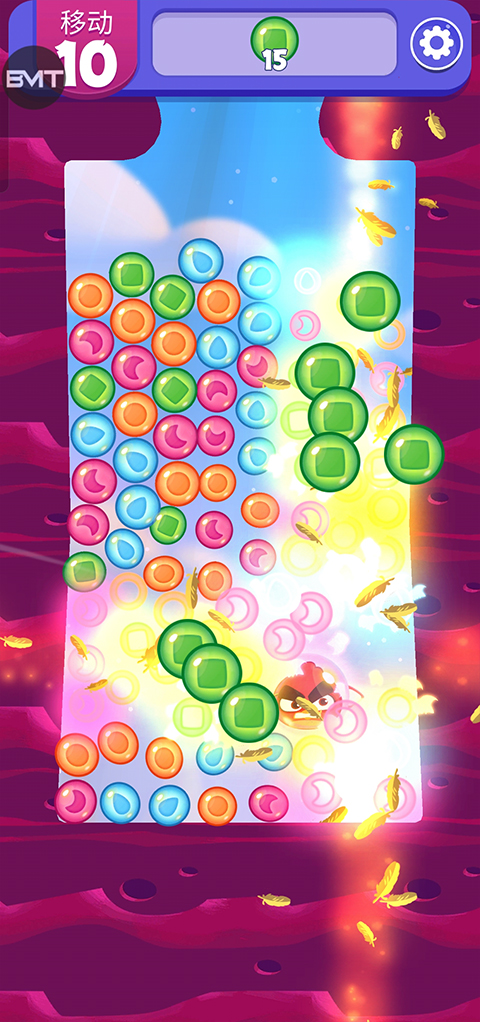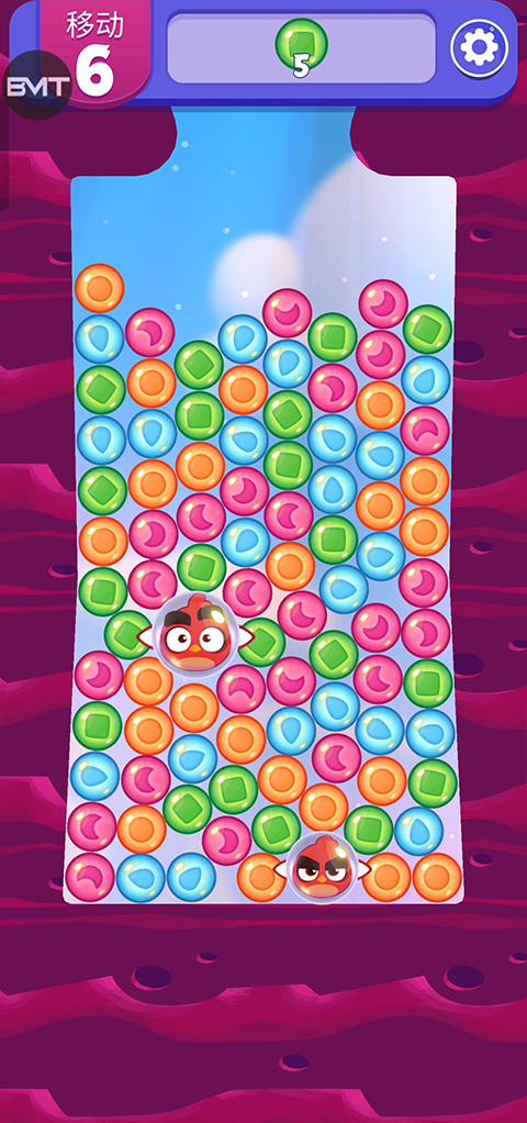1、首先打开愤怒的小鸟梦幻爆破最新版,玩家可以点击相同的泡泡来消除它们;