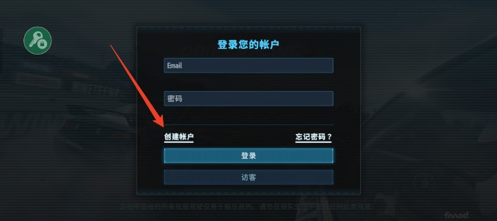 1、首先玩家登录游戏需要邮箱和密码,如果没有账户,可以直接去创建一个。