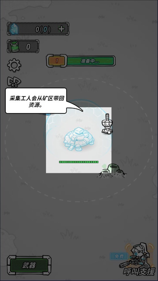 2、点击开始游戏,利用太空工程车,收集水晶和气矿。