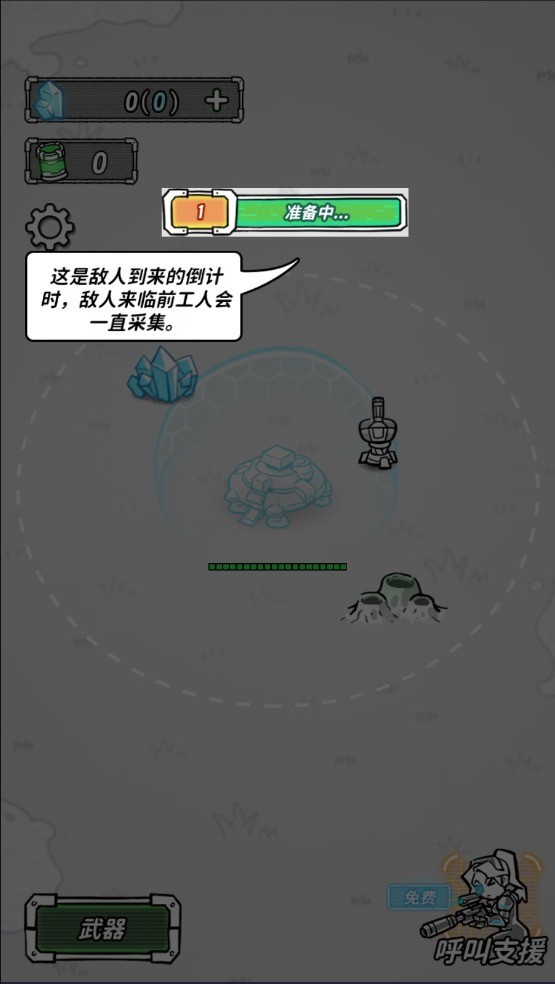 4、在敌人到来之前,工人都可以一直收集资源。
