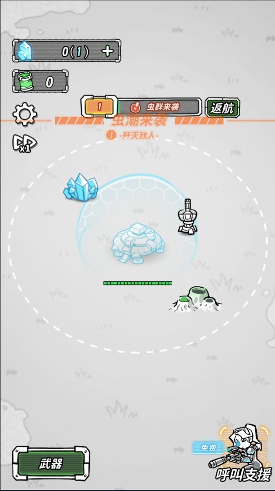 5、防御塔会自动攻击,虚线代表了可以攻击到的范围,虫潮来袭,抵御敌人的进攻。