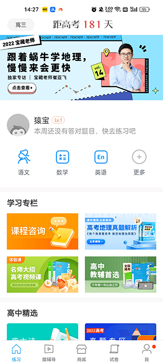 主要为大家开放式课程题目学习测试,更是有高中特训班教导等等。