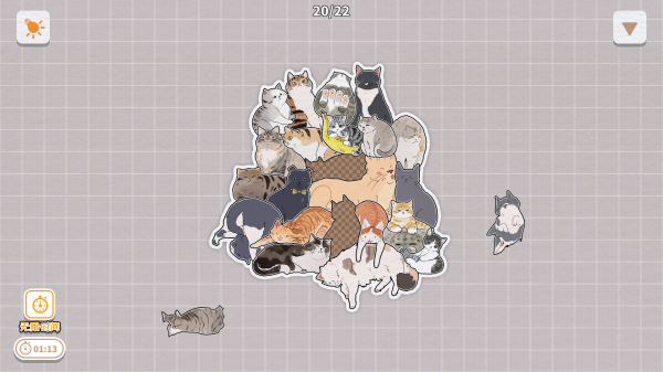 4、沉浸式的拼图体验,在有限的时间旋转拼猫猫,但没有多少难度,无障碍吸猫。