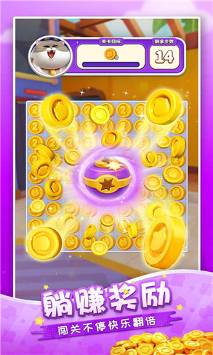 《假日乐消消》头牌心灵理疗师是一只名叫毛毛的猫咪,无论闯关还是建造,它都陪伴左右——欢呼鼓励、傲娇卖萌,又或是调皮捣蛋。消除闯关,即可与它亲密互动。