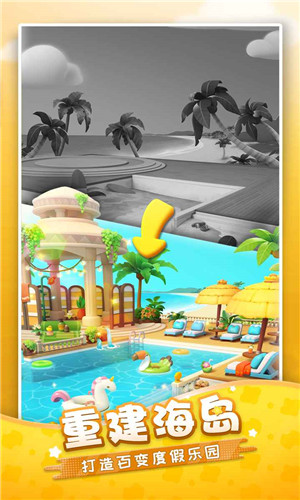 假日岛必玩榜——爽到停不下来的解压三消!轻松合成满屏强力道具,火箭、炸弹、陀螺和彩球,一键触发超炫酷特效&动画!保持连胜即可获得开局道具奖励,策略组合威力翻倍,一步引爆打开棋盘!巧用心得:火箭、炸弹、陀螺相互组合,即可精准消除任意位置的障碍,又可提大幅升消除效率;终极王炸组合:彩球x彩球,瞬间清扫全盘障碍!轻松上手,脆爽十足,惊喜不断,为家人们奉上丝滑的消除体验