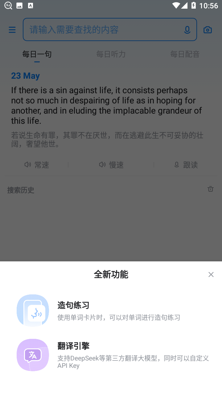 3、语音输入:英语整句翻译发音功能,支持语音输入。