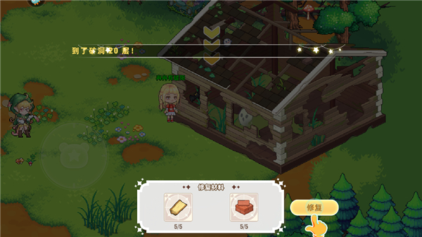 6、入住小镇后,我们会获得一座房子,但屋子有点破烂,我们需要修缮一下,点击材料堆放地,拾取材料;