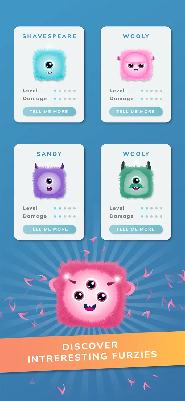 毛茸茸方块是一款休闲益智类游戏,游戏玩法类似于拼图,玩家需要在网格上连接造型不一的毛毡块,达到条件后将消除。游戏内的毛毡块是一个个小怪物,都有其特殊技能,比如红色的方块可以让周围的七个方块以十字的形式消除,黄色的则可以以十字的形式消除十三个。趣味的游戏玩法加上可爱多变的毛毡块,以及不断突破分数的闯关玩法,十分上瘾,快来消除毛毡块,冲击最高分吧!