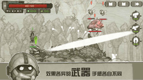 原始旅程又名Original Journey,是一款横屏2D动作射击游戏,你将扮演Ato大军中的一名新兵,在传奇的战斗英雄科林队长的带领下,展开极度危险的任务,改变族人的命运。精致的手绘画风加上沉闷的色调,为玩家营造了一个奇妙的科幻世界,在这里你将体验丰富的游戏主线,不断提升操作技巧、制造各色装备与敌军战斗,探索未知的异星。此外,这款游戏的战斗玩法是一大特色,玩家需要面对层出不穷的奇怪生物,利用地形优势以及武器装备,出奇制胜击败它们。