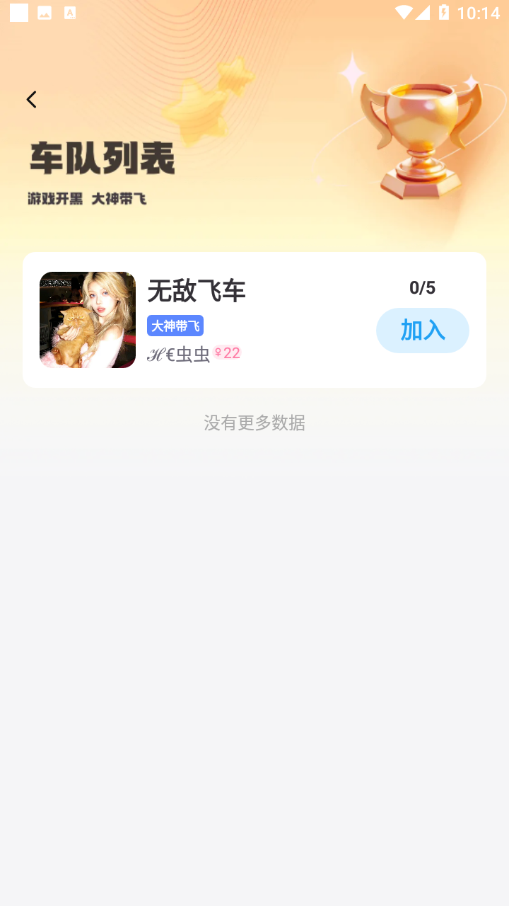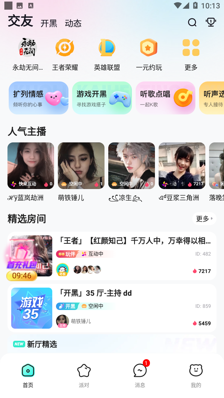 还在一个人孤零零的玩着游戏吗?快来试试这款不二开黑,软件有着多样化的功能选择,包括游戏开黑、语音聊天等,不仅能满足大多数游戏玩家的开黑需求,还可以为其他用户提供一个巨大的交友平台,软件还有着唱k功能,用户可以在房间里大展歌喉,以自己独特的魅力结交适合自己的挚友,感兴趣的快来下载安装吧~