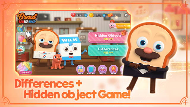 面包理发店,英文名Bread Barbershop Differences,是一款根据同名动画改编而来的休闲益智游戏。游戏内出现了诸多动画角色,如理发师面包、爱闯祸的牛奶、收纳员巧克力等等,3D的人物模型以及卡通的游戏画风,十分还原。这款游戏以消除玩法为主,与寻产消除游戏不同的是,在这款游戏中,玩家需要通过找茬的形式进行匹配消除,获得奖励可以用来装修理发店,是一款很好玩的休闲娱乐小游戏。