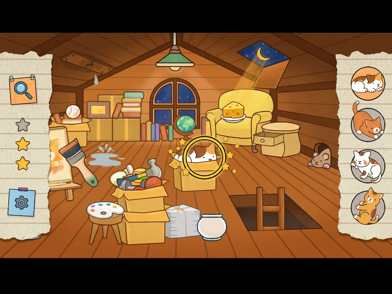 1、喵侦探咪雅受托在脏乱的房间内寻找它的小猫,以及主人的失物。