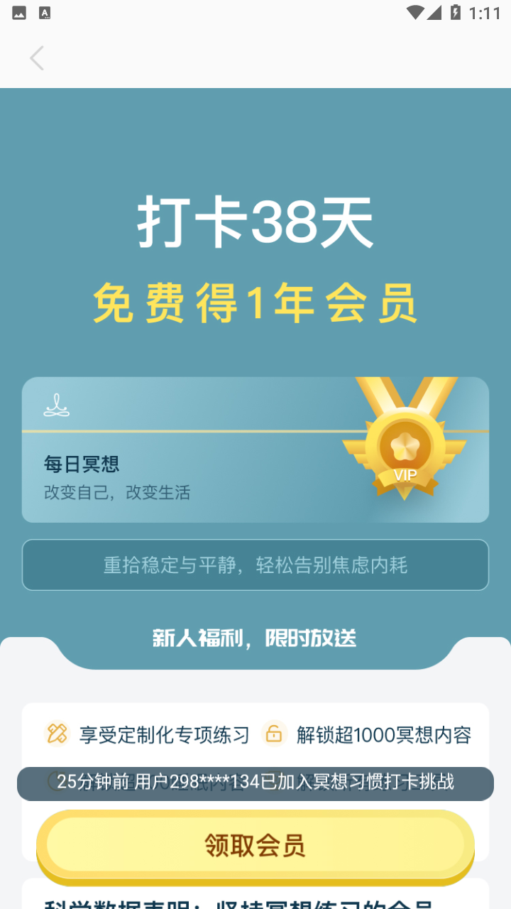 3、冥想挑战赛:鼓励用户挑战自我,养成冥想习惯,在挑战中成长进步。