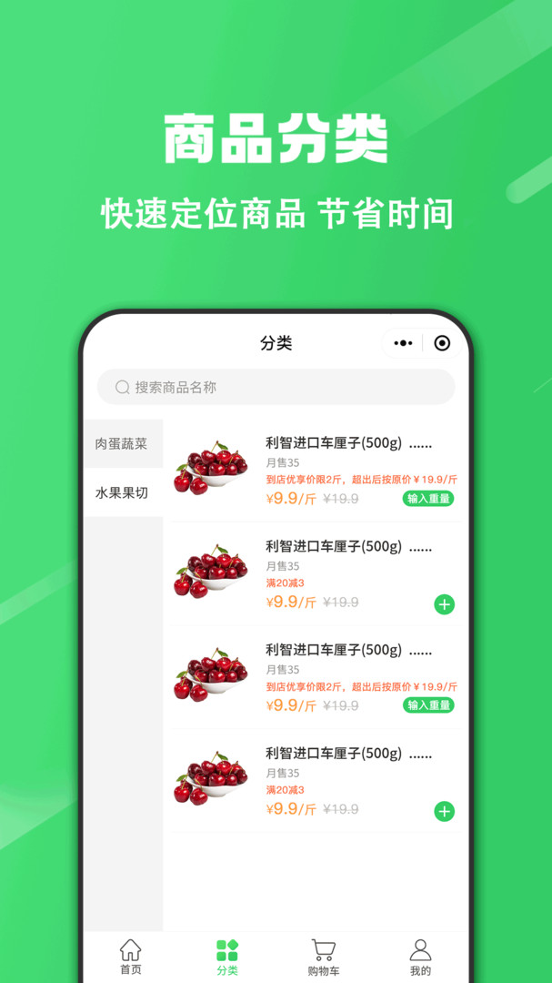 1、打开该软件,在首页有这厨房生鲜,水果,商店超市等商品分类,用户可以根据想要买的商品领取优惠券,下单立即省钱;