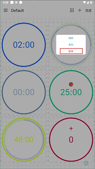 一种是在编辑模式下,单击需要删除的计时器,在弹窗中选中删除即可。