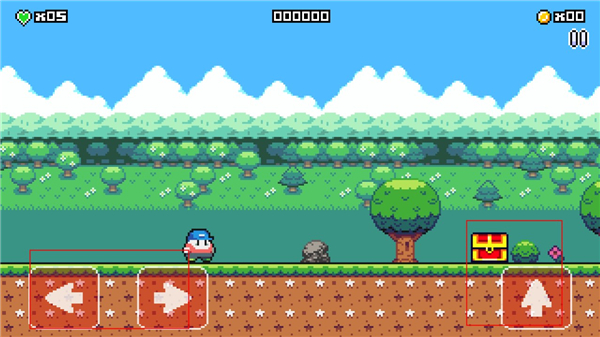 3、进入游戏,玩家可以通过左边的按钮来控制角色进行前后移动,右边的按钮可以控制角色在遇到障碍物时进行跳跃。