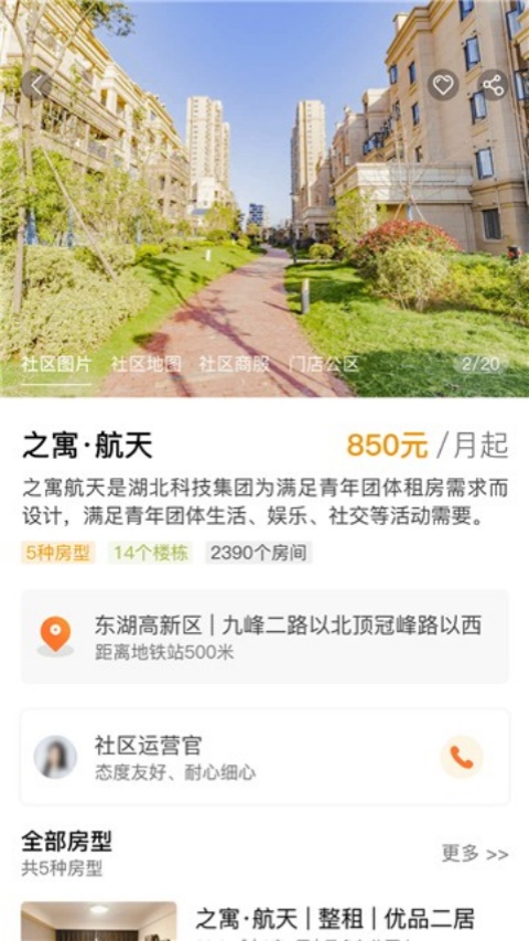2、挑选了合适的房源后可以点击进入房间详情页面,用户可以在里面查看房间的详细图片介绍、设备设施等,满意后点击预约看房或立即签约
