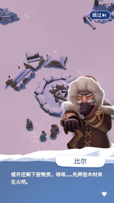 游戏开始会有简短的剧情引导,首先要抵抗严寒的重要工具便是火种,通过收集木材来生火。