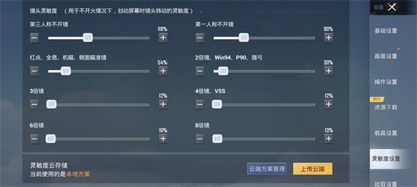 2、镜头灵敏度:第三人称不开镜:118%;第一人称不开镜:90%;红点、全息、机瞄、侧面瞄准镜:54%;2倍镜、win94、p90、猎弓:30%;3倍镜:12%;4倍镜、vss:12%;6倍镜:10%;8倍镜:13%