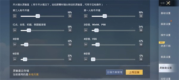 3、开火镜头灵敏度:第三人称不开镜:118%;第一人称不开镜:90%;红点、全息、机瞄、侧面瞄准镜:58%;2倍镜、win94、p90:34%;3倍镜:40%;4倍镜、vss:42%;6倍镜:32%;8倍镜:12%