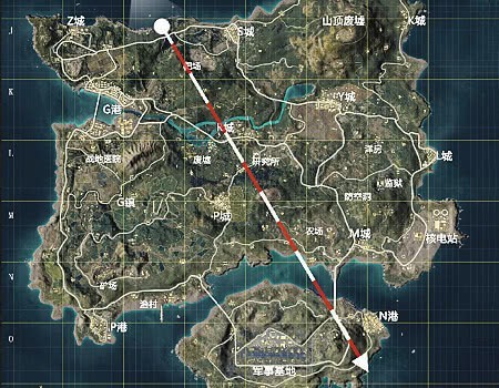 示意图3:圈边转移路线示例(标注常见掩体与安全区刷新规律)