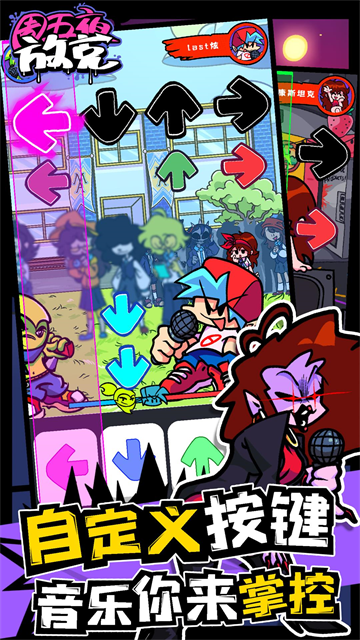 周五夜放克联机版是一款竖屏音乐节奏游戏,这款游戏中的节奏符号是由上往下掉落模式的,玩家需要把握好时机,准确度复刻出所有按键,奏响一首唯美的乐曲。游戏中有许多人物角色可供选择且每个角色有不同的技能以及特色,尝试用不同的角色通关游戏吧!还有四种可选模式,故事模式,自由模式,联机对战以及隐藏彩蛋,每个模式的玩法都各具特点,玩家还可以在联机模式和好友对战,看看谁更厉害。