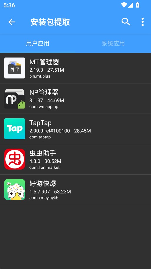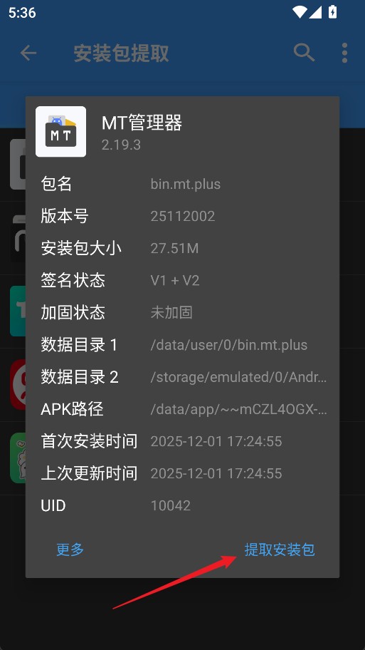 4、点击“提取安装包”,完成APK文件的导出。
