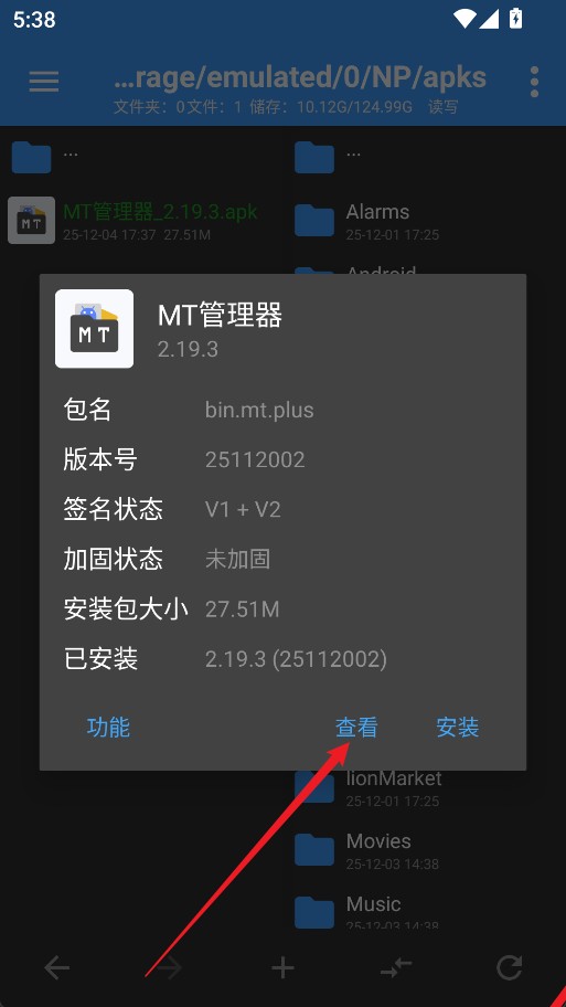 6、在目录中找到刚提取的APK文件并点击“查看”。